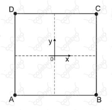 Quatro partículas, denominadas $A$, $B$, $C$ e $D$, partem simultaneamente dos vértices de um quadrado de lado unitário. Todas as partículas apresentam velocidades escalares iguais durante suas trajetórias. A partícula $A$ persegue a partícula $B$, de tal forma que o seu vetor velocidade está sempre na direção e sentido de $A$ para $B$. O mesmo ocorre entre as partículas $B$ e $C$, $C$ e $D$ e, finalmente, entre $D$ e $A$. Tomando o centro do quadrado como origem do sistema de coordenadas, a tangente do ângulo entre vetor unitário do sentido positivo do eixo $x$ e o vetor que une o ponto $A$ ao ponto $B$, quando $A$ se encontra em um ponto arbitrário $(x, y)$ da sua trajetória, é dada por: