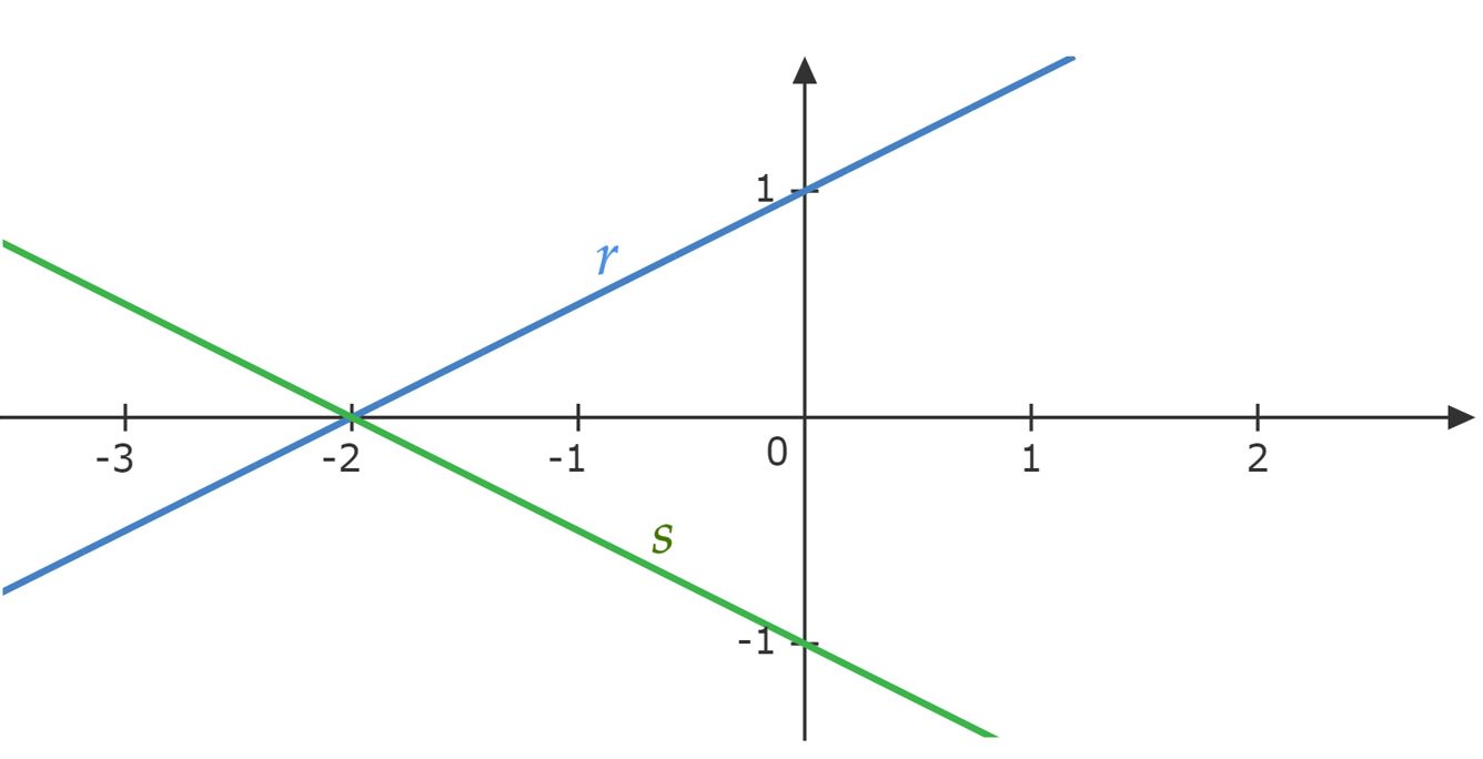 Portanto, com esses dois pontos podemos escrever a equação segmentária da reta $(s)$:\begin{matrix} \dfrac{x}{-2} +\dfrac{y}{-1} = 1 &\therefore& \fbox{$x +2y+2 - 0$}