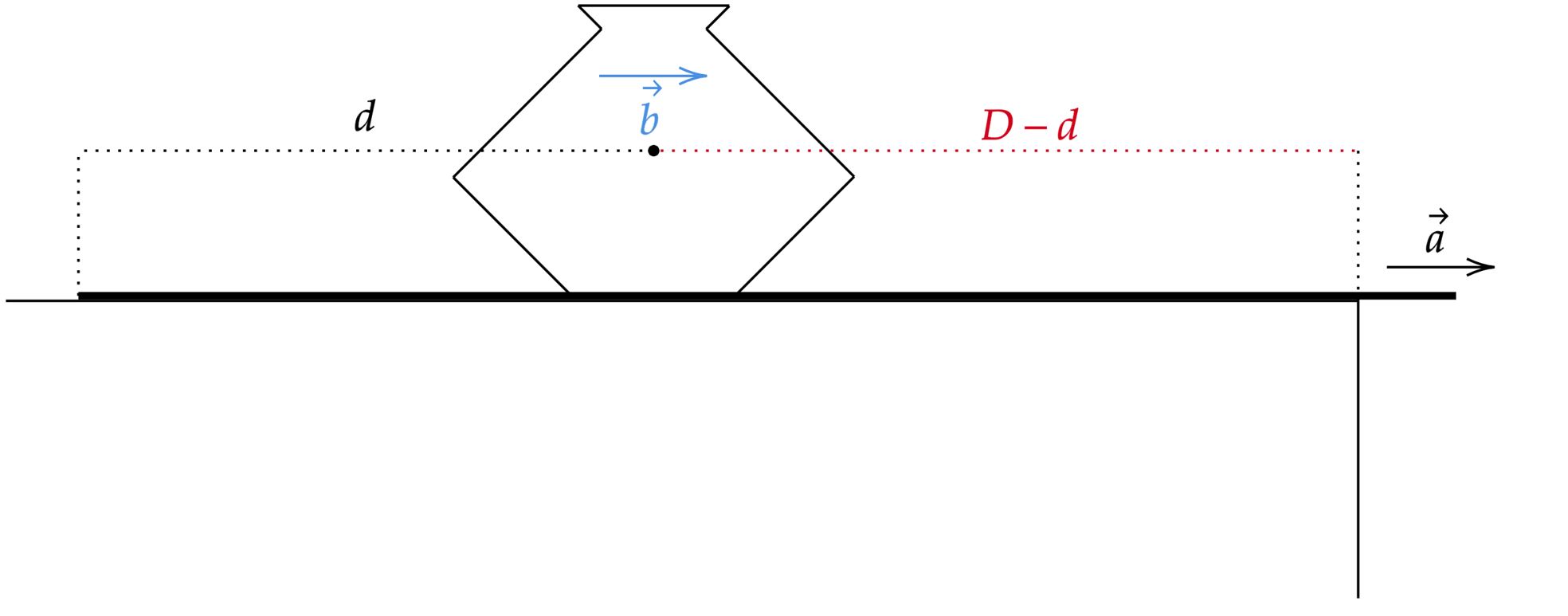 \end{matrix}Ao passo que o vaso deve cair sobre a mesa, entende-se que este percurso $x$ precisa ser menor que $D-d$, veja a imagem abaixo: